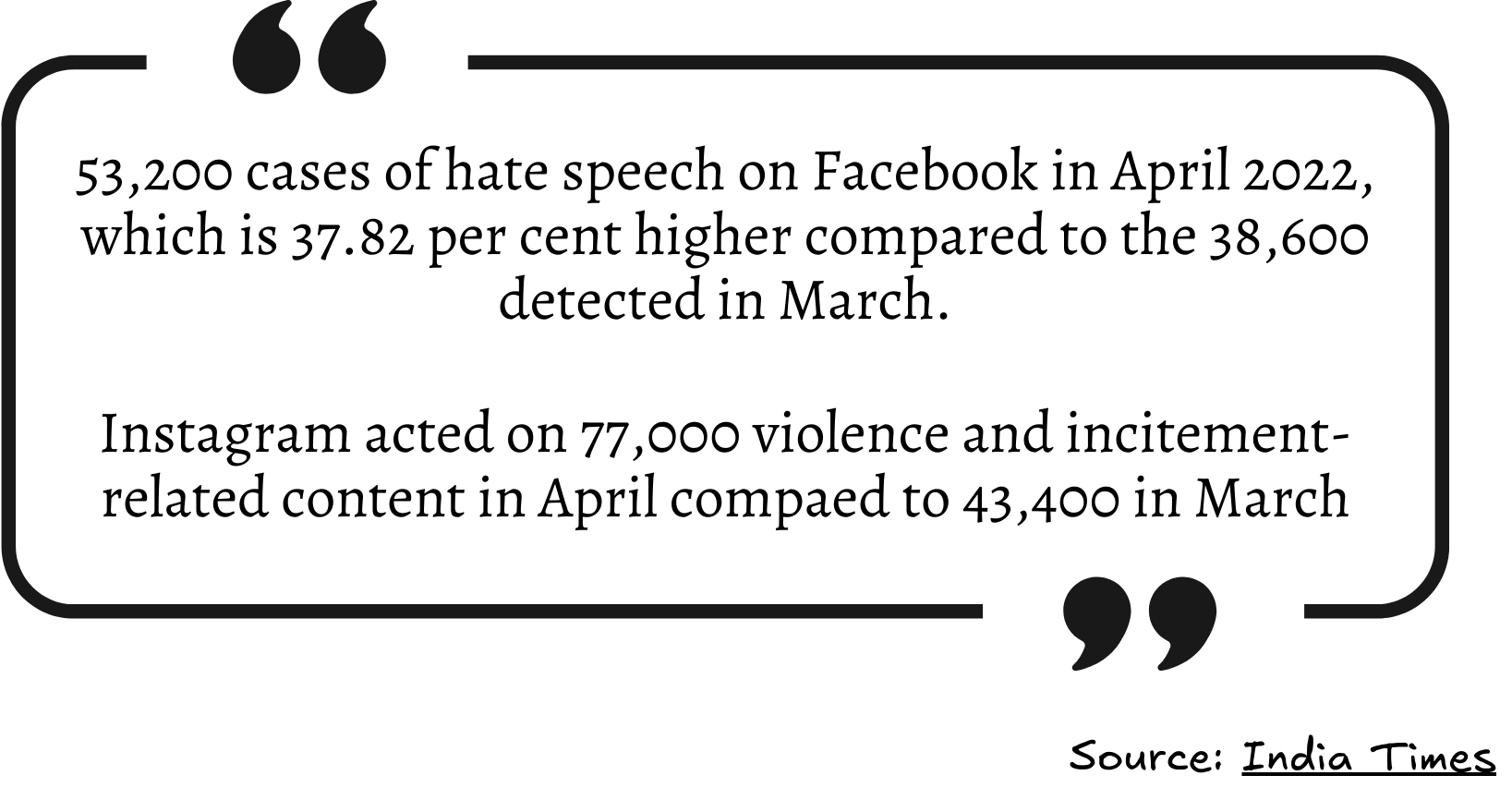 Hate speeches are more common than we may think. It is evident from the fact that in April 2022 itself Facebook identified over 53000 hate speech and Instagram acted on 77000 such cases. These figures may not include covert cases. Since its widespread availability, the digital landscape has become a breeding ground for aggressive behavior, posing a significant threat to digital well-being and social harmony.